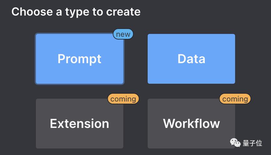 自定义功能目前包括数据(Data)和提示(Promot)两种模式。未来还将推出扩展(Extension)和工作流(Workflow)模式。