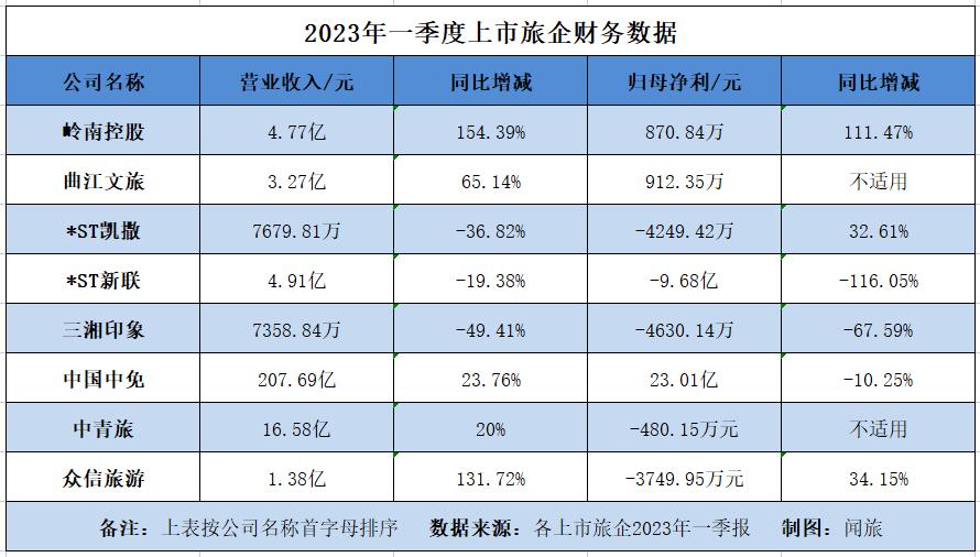 上市旅企年报收官:2022年亏损仍是主调,2023Q1有7家扭亏为盈