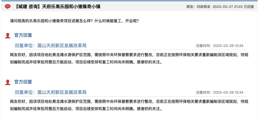 △眉山天府新区发展改革局3月27日的回复截图