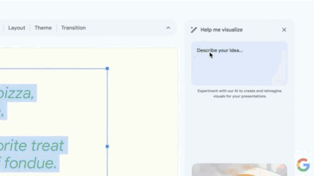AI在Slides中的应用示例:根据要求自动生成插图。