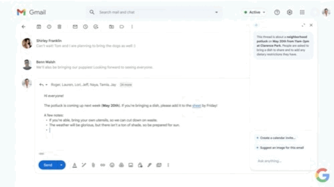 AI在Gmail中的应用:自动识别邮件主题,并给出不同的撰写方案。