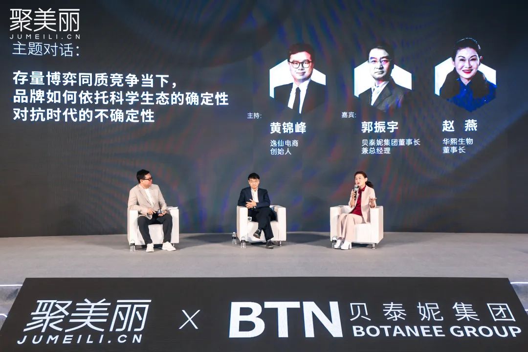 为此聚美丽特别邀请了贝泰妮集团董事长兼总经理郭振宇、华熙生物董事长赵燕,以及新锐代表的逸仙电商创始人黄锦峰作为主持人,就上述课题展开了一场题为《存量博弈同质竞争当下,品牌如何依托科学生态的确定性对抗时代的不确定性》的深度对话。