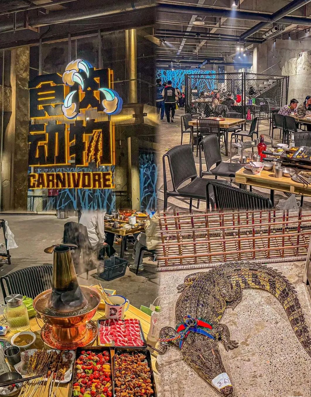 整体装修风格与名字中透露的粗矿野性一脉相承,砖墙灯管裸露在外,茅草、石块、兽皮这些元素随处可见,铁网分隔有种MMA格斗场的即视感,近期还有顾客看到店内出现了一条小鳄鱼!