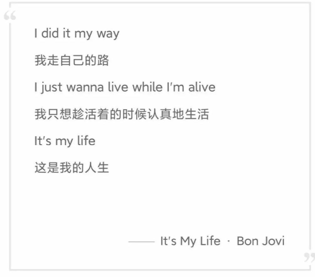 图/《It's My Life》歌词分享,来源/网易云音乐 燃次元截图