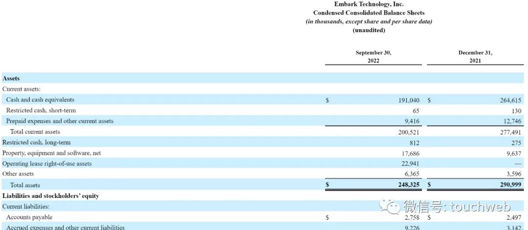 而截至2022年9月30日,Embark Trucks仍持有2.48亿美元的资产。