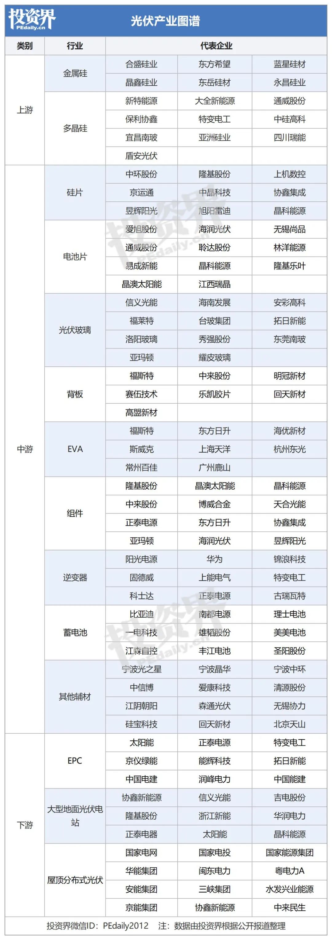 光伏产业链上游包括硅料、硅片等原料及加工,中游主要为构建光伏电站所需的电池片、组件和部件,包括太阳能电池生产、光伏发电组件封装等环节。下游为光伏的应用领域,主要是光伏电站的搭建、系统集成与运营。