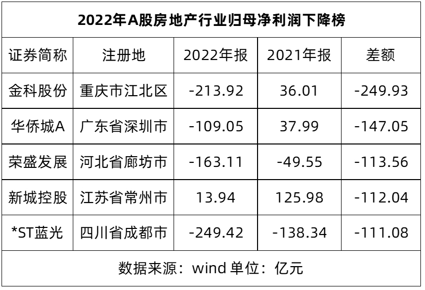 拖重庆后腿的正是房地产。wind数据显示,72家重庆A股上市公司中有41家企业归母净利润出现负增长,有5家减利超10亿,分别是迪马股份、赛力斯、智飞生物、重庆钢铁和金科股份。其中,金科股份归母净利润约-213.92亿元,减利约249.93亿元,此番大额亏损更是收到了深交所的问询函。