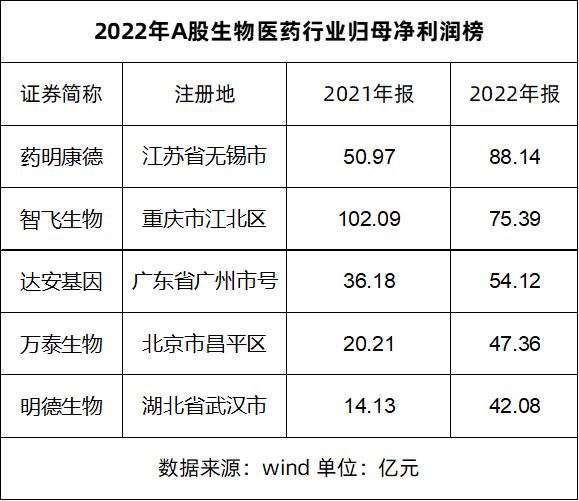 “中国民营疫苗第一股” 智飞生物2022年归母净利润约75.39亿元,减利约26.70亿元,也是2017年以来首次出现归母净利润下跌情况。但放在整个A股市场的生物医药板块,2022年智飞生物归母净利润排名第二。