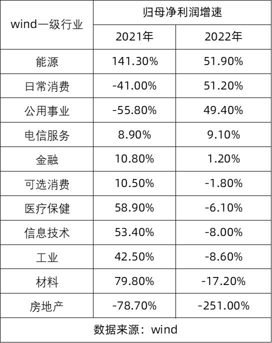 从全国来看, 在已披露2022年报的5160家上市公司中,共计实现归母净利润约5.21万亿元,同比增长1.38%,有52%的公司实现归母净利润负增长,其中房地产行业出现巨额亏损。