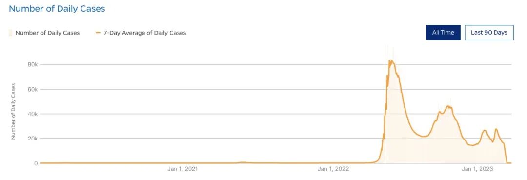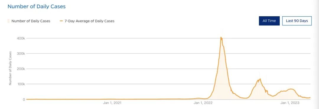 韩国的第一波高峰发生在2022年3月,第二波在8月,随后是与我们第一波时间接近的今年元旦前后。
