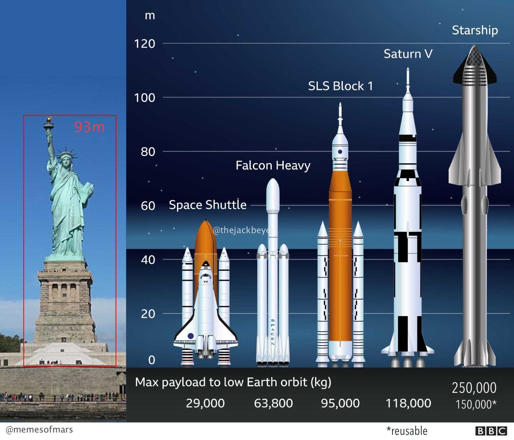 为了进一步降低发射成本,SpaceX 正在建造名为 Starship(星舰) 的下一代火箭。这个东西特别大。该运载火箭由两部分组成,分别是 Super Heavy(超重型)助推火箭(第一级)以及叫做 Starship(第二级)的航天器。