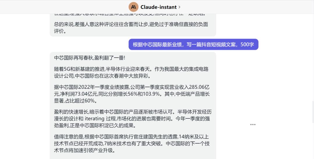 但仅从这些表现上看,加上研发团队和open AI的关系,至少可以推断出,它应该是市面上最接近chatGPT的产品了。