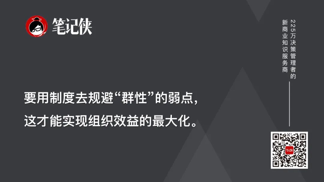 所以,要用制度去规避“群性”的弱点,这才能实现组织效益的最大化。