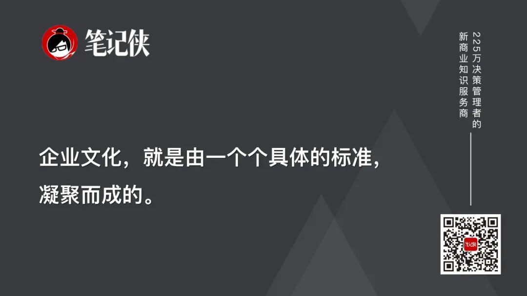 所以,企业文化,就是由这样的一个个具体的标准,凝聚而成的。