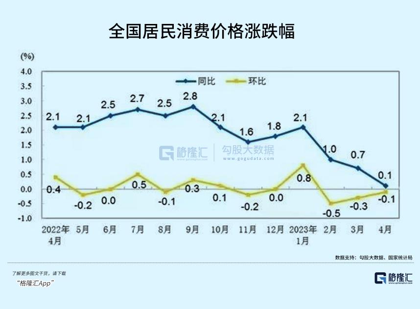 据国家统计局,4月CPI同比+0.1%,环比-0.1%,3月同比+0.7%,增幅进一步缩小;PPI同比-3.6%,环比-0.5%,3月同比-2.5%,降幅进一步扩大。