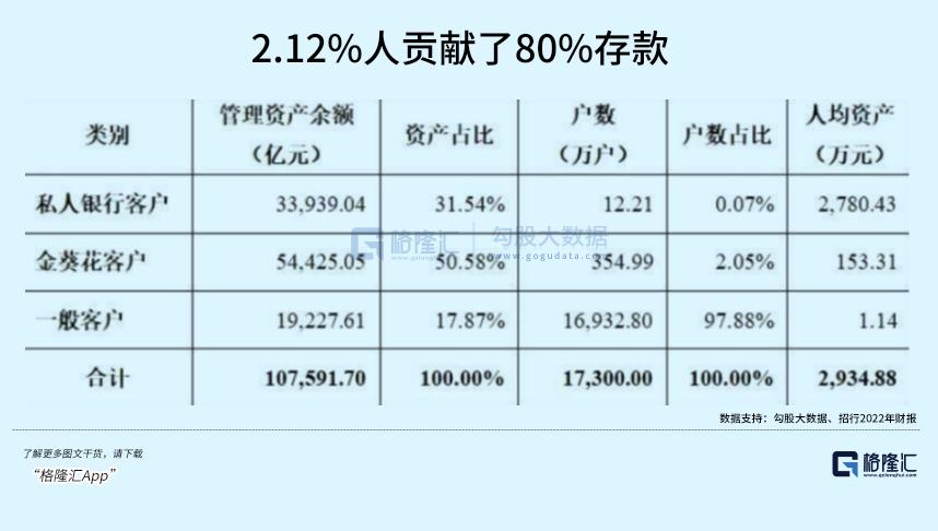 2022年,12.21万日均资产1000万元以上的富豪,持有31.54%资产,人均2780万元;355万“金葵花”客户,持有50.58%的资产,人均153万元。