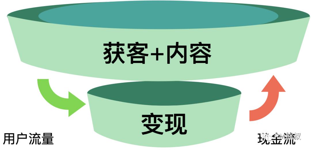 在目前内容流量的模型是三层漏斗“内容→关注→变现”,转化效率还不够高。