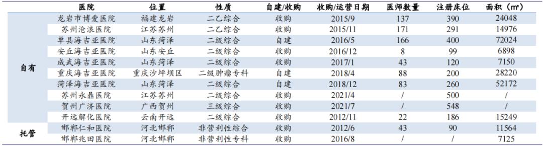 图:海吉亚医疗运营医院情况,来源:太平洋研究院