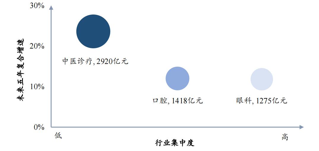 图:中医、口腔和眼科医疗服务行业对比,来源:兴业证券