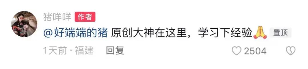 “猪咩咩”在评论区表示,“好端端的猪”是原创,自己是学习下经验。