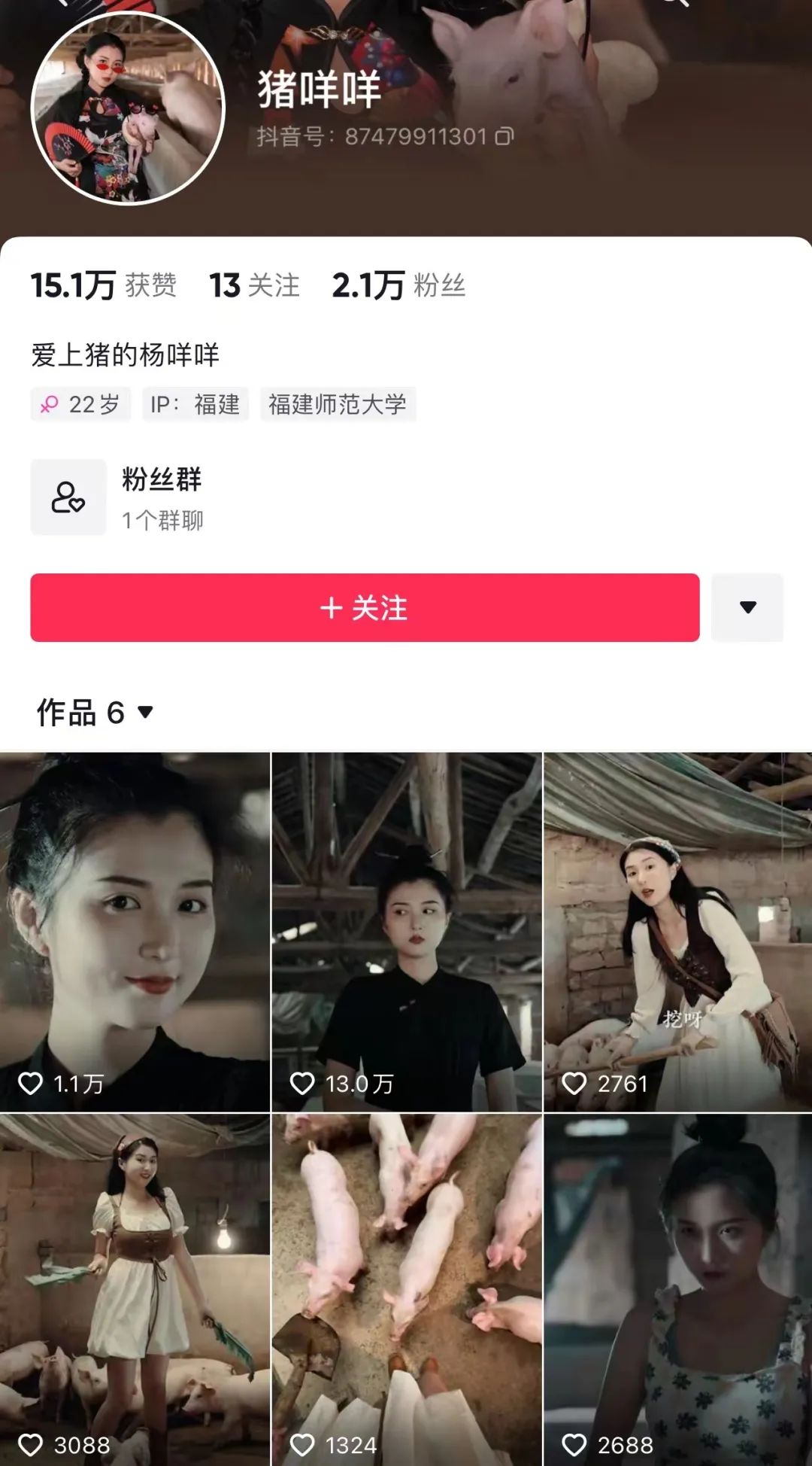 不过,如果仅仅是拍摄在猪场变装的颜值向视频,似乎很难看出她是一位三农博主。