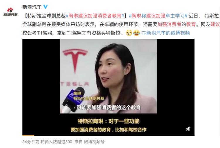 这是在2021年5月份的时候,特斯拉全球副总裁陶琳在接受中国媒体采访的时候说出的一句话。这句话在一定程度上可以算是被断章取义过度解读了,当时陶琳的上下文主要说的是跟驾校和交通部门合作,让大家了解特斯拉单踏板汽车作为新型汽车代表的使用方法,避免误操作或因为不了解功能而导致的问题。
