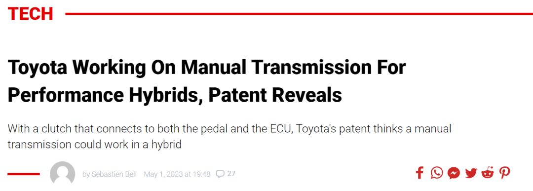 而就在最近,丰田为了让他们的混动车型开着更有乐趣,甚至搞出了个混动车型的手动变速箱。