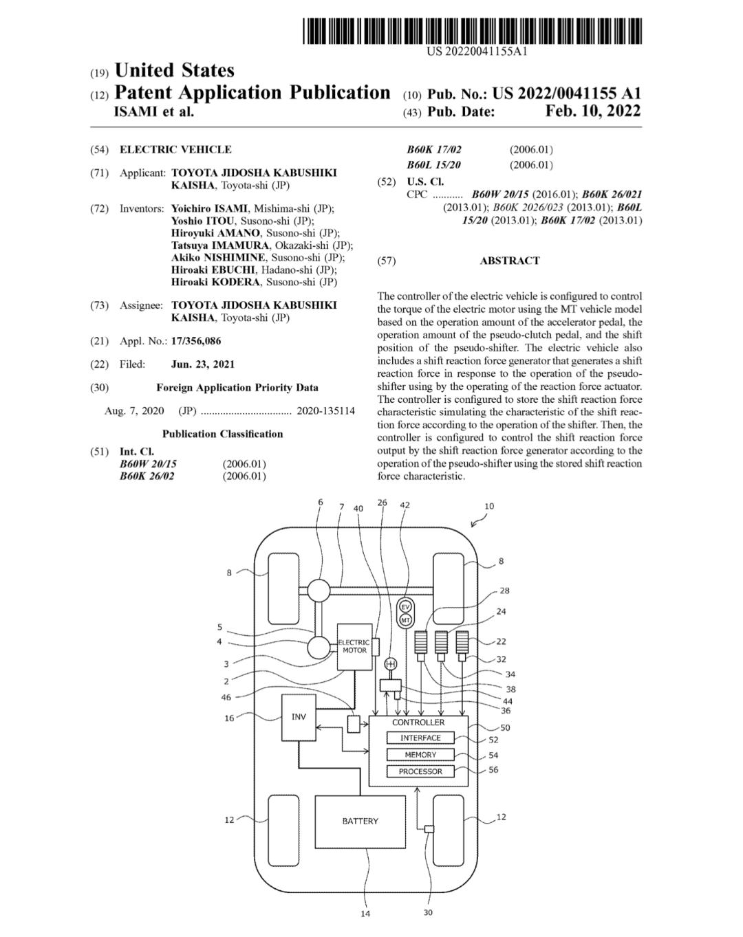 因为电车的一大特点,就是 tm 不需要变速箱也能输出峰值扭矩。可丰田在去年早些时候,愣是整了个给纯电动车装手动变速箱的专利。。