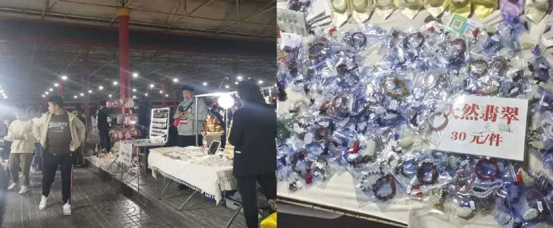 图/潘家园夜市热闹非凡(左)各类手串(右)来源/燃次元拍摄