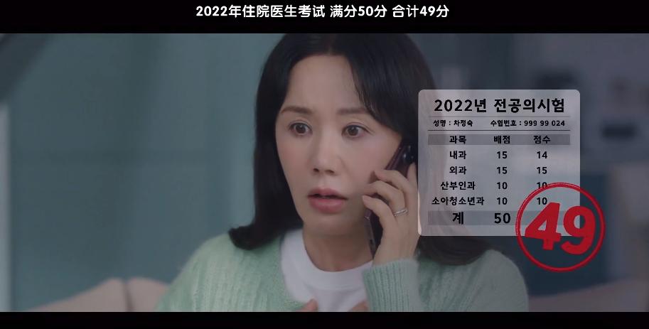 电视剧中,车贞淑作为名牌大学的顶级学霸,在规培的招聘考试中怒斩鳌头,拿下了全医院历史上的最高分(49/50),一度惊呆了同期吭呲吭呲考了 45 分的儿子。
