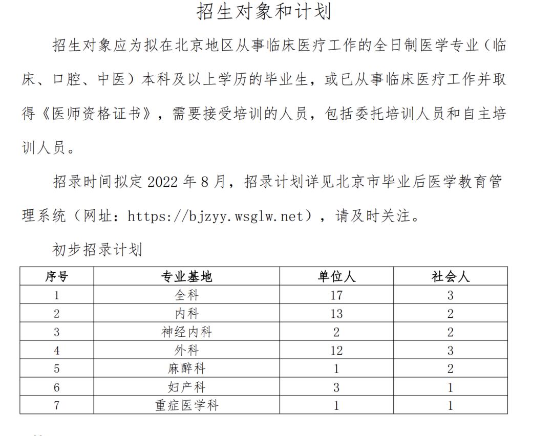 北京清华长庚医院基地 2022 年北京市住院医师规范化培训招生简章