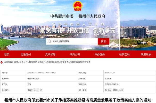 在产业扶持上,衢州多管齐下。今年2月,《衢州市关于承接落实推动经济高质量发展若干政策实施方案》印发,其中提到,强化产业基金引导。完善基金产品体系,组建国企投资基金、省金控共富基金,优化天使基金、种子基金,并在建立容错机制前提下实行自主管理。加快组建“6+X”产业配套基金,发挥产业基金和工业发展基金引导作用,重点支持六大产业链的牵引性、创新性项目。