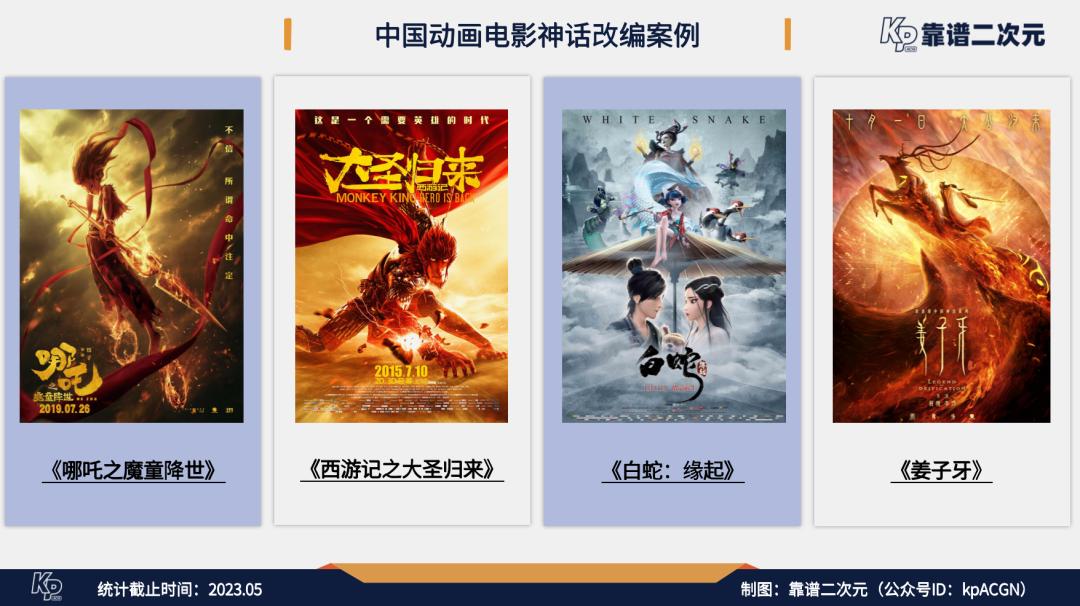 除了IP基础,根据传统神话传说、经典童话故事进行改编是国产动画电影市场惯用的内容选择,也是目前比较被观众认可的方向。在121部电影中,18%的作品为中国古代神话传说相关题材,主要来自《西游记》、《山海经》、《封神演义》等。另有超10部电影是根据国内外经典童话故事改编的,比如格林童话、安徒生童话、《一千零一夜》等。