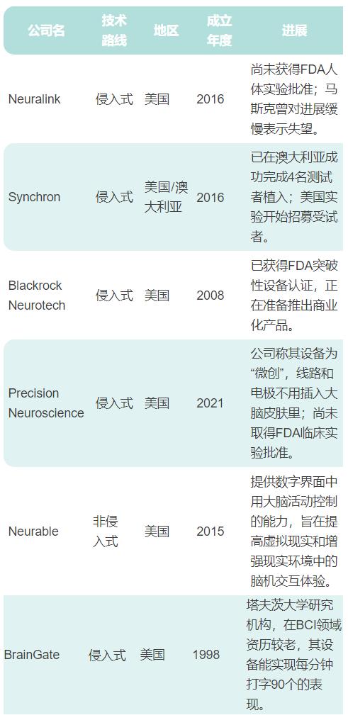 海外主要脑机接口公司/机构及其进展