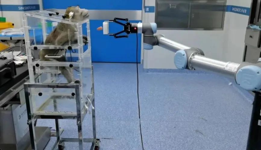 ●这是南开大学段峰教授领衔的团队进行的试验,他们在北京完成了全球首例非人灵长类动物(猴)“介入式脑机接口试验”。