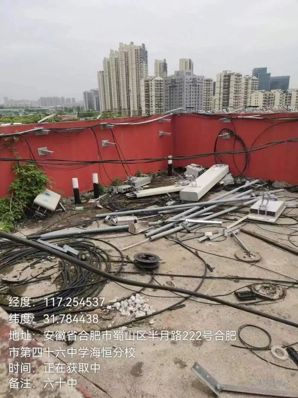 “合肥六十中(注:现在学校名称是四十六中学海恒分校)这个站是存量移交站点,我们公司与学校签订了场地租赁合同,有效期到2024年10月31日,基站原来是楼面塔,学校在2022年12月份因安全问题要求改为楼面抱杆。”负责该区域的合肥铁塔公司工作人员介绍。
