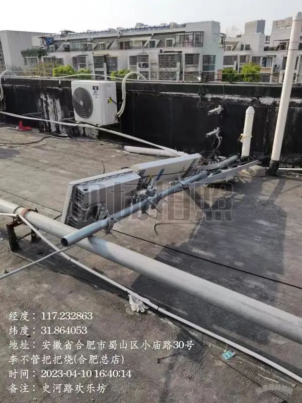 就在博弈过程中,突然发生了新的变故。2023年4月10日下午,大概有20多人冲上楼顶基站,把天线拆除放倒了。欢乐坊KTV基站的问题再次陷入僵局。