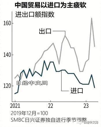 5月9日公布的4月贸易统计数据也疲软。从SMBC日兴证券经过季节调整的数值来看,出口额同比减少11%,进口额同比减少6%。关于进口,SMBC日兴证券新兴市场国家首席经济学家平山广太认为:“还不能说中国需求出现了好转”。