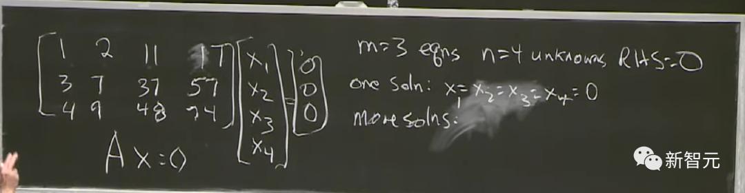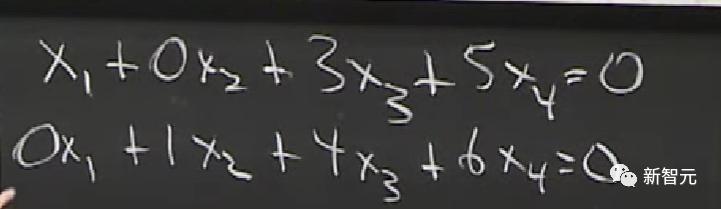 接下来,是3个等式、4个未知数的矩阵。
