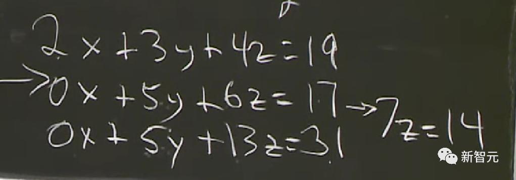 将x的一次项系数变为0后,得到了z的数值。然后再重回前面的方程,逐渐得出y、x的数值。