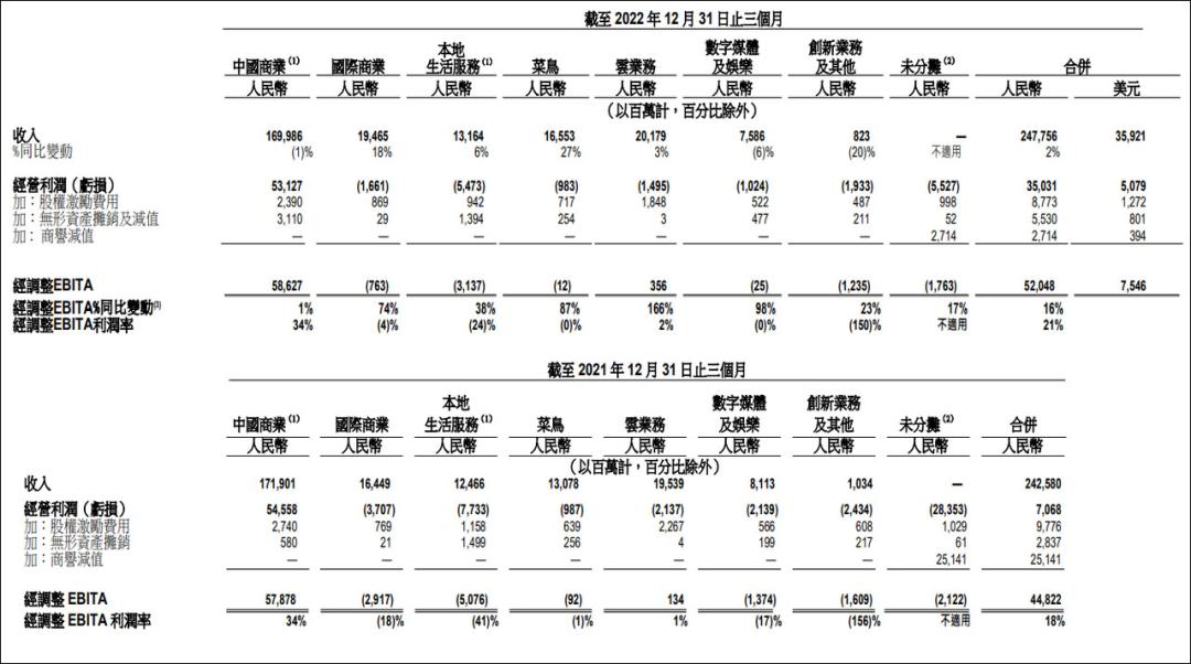 2022Q3阿里中国商业收入下滑1%,图/阿里巴巴集团财报