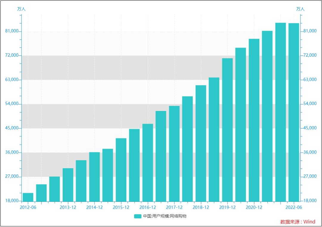 首先是互联网人口红利的消退。2012年底中国网络购物用户为2.42亿,但到了2022年,国内网络零售用户规模已经达到8.45亿人,占网民整体的79.2%。可以说客群早已被开发殆尽,增量已经不可能支持规模增长。