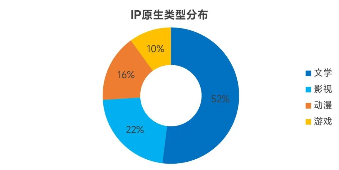 从IP源头来看,相关数据显示,我国文娱IP市场中原生类型为文学的IP占比达52%,是最主要的IP来源,但文学领域变现能力有限,根据伽马数据测算,中国文娱IP市场收入中文学领域直接变现占比不足2%,文学IP多领域发展成常态,但更多领域的IP创作能力也在持续提升。