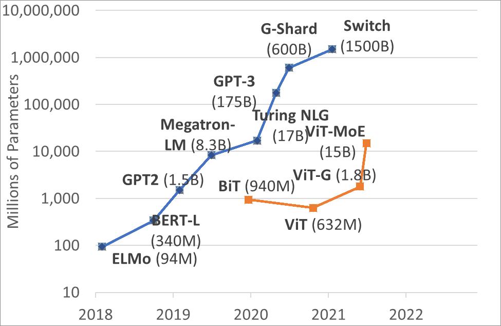 NLP 领域和计算机视觉领域模型大小的变迁 ,图片来源:新智源
