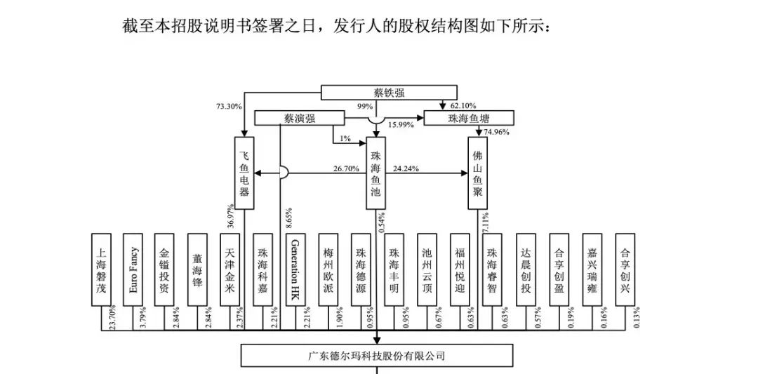 招股书显示,目前天津金米持股2.37%、董海锋持股2.84%。按照当前市值近70亿来计算,2020年11月两家共计投资的2.75亿元在现在上市成功后,可变现近3.647亿元,能赚近1亿。而IPO前公司控股股东为飞鱼电器,实际控制人为蔡铁强。蔡铁强间接及直接持股44.61%,上市后身家超30亿元。
