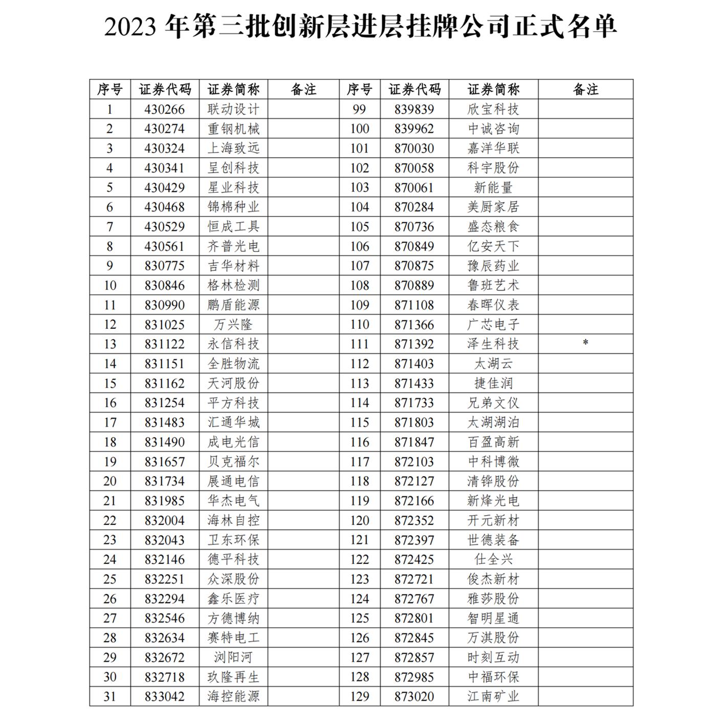 新三板2023年第三批创新层进层决定:联动设计等195家调入 总数量将超1800家