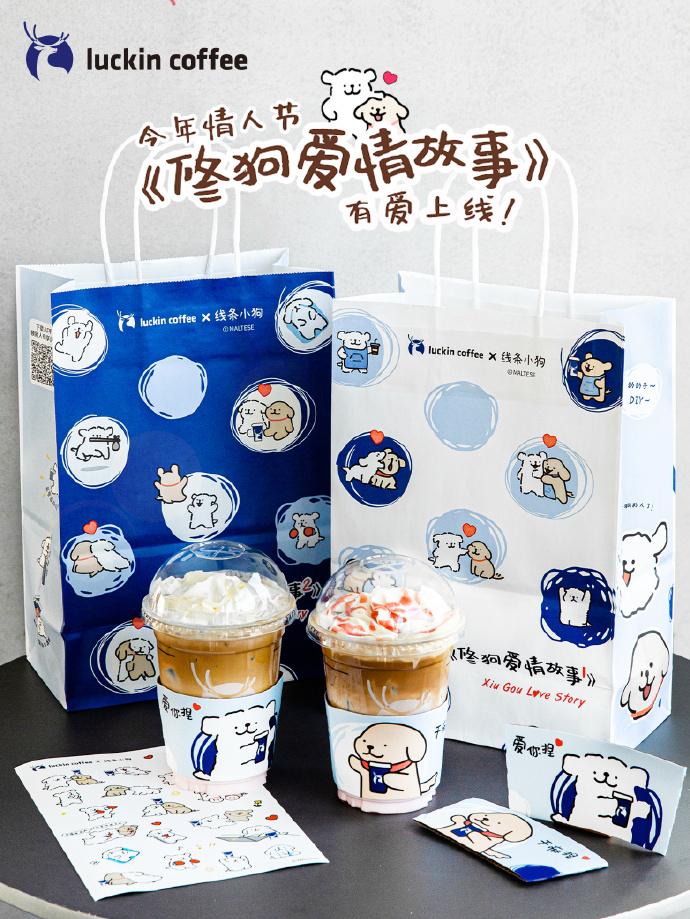比如喜茶联名设计师藤原浩推出全新口味“酷黑梅桑”,门店、产品设计也会采用全新的黑色系,并且炒热了当年桑葚作为奶茶原料的做法;再比如瑞幸咖啡合作线条小狗,结合情人节推出的限定新品“带刺玫瑰拿铁”,买赠杯套、贴纸等周边,不到一周贴纸多次售罄。