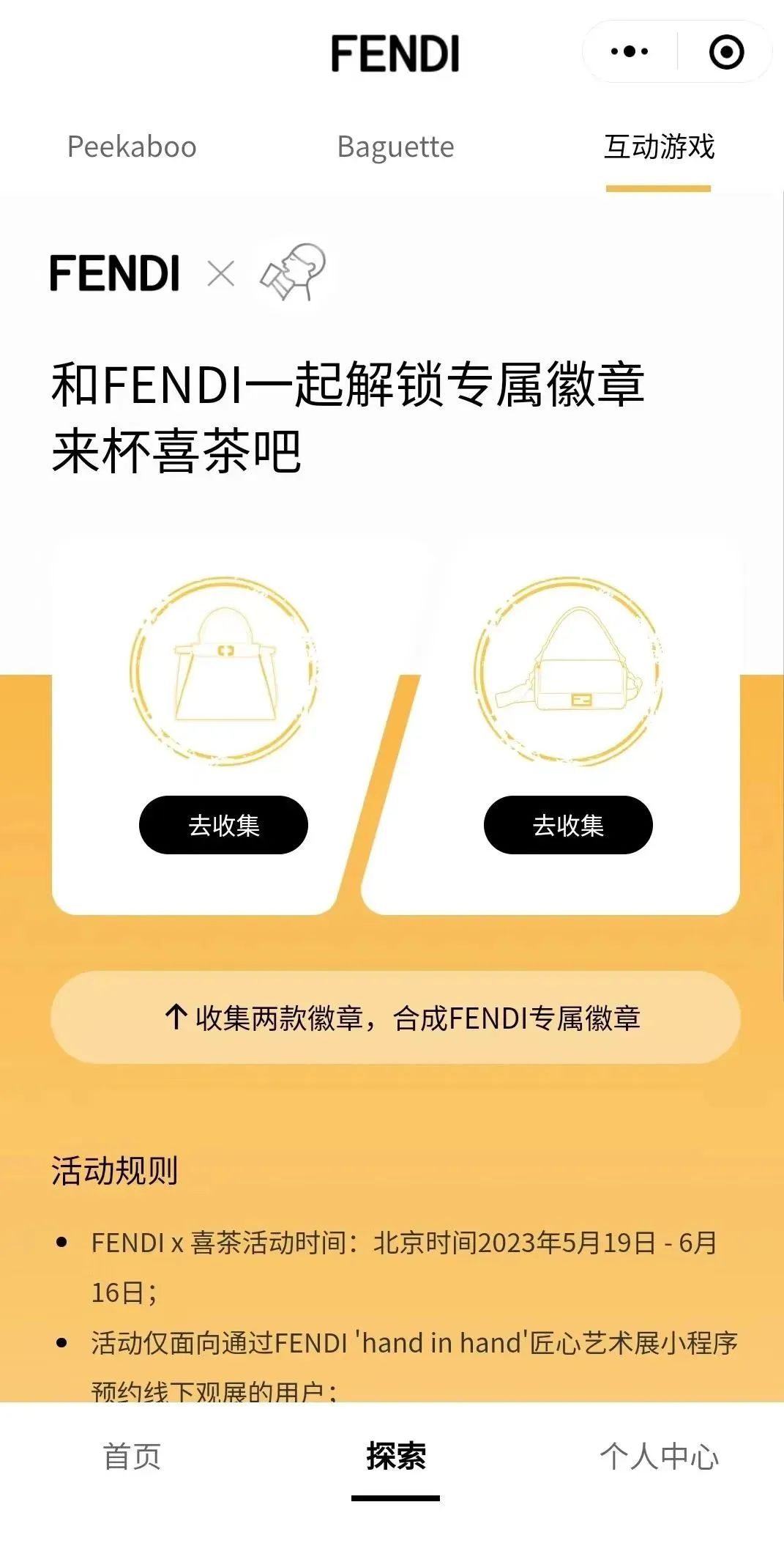 直到微博热搜发酵数小时后,喜茶才在双微、小红书等多个社交账号正式表示,携手“FENDI 'hand in hand' 匠心艺术展”带来「hand in hand茶室」及具有中国彝族特色的限定产品体验,并在喜茶大陆门店特别呈现“FENDI 喜悦黄”特调。同时,喜茶还将品牌社交账号的视觉统一换成了限定联名版,包括全新的“喜悦黄” LOGO 和封面。