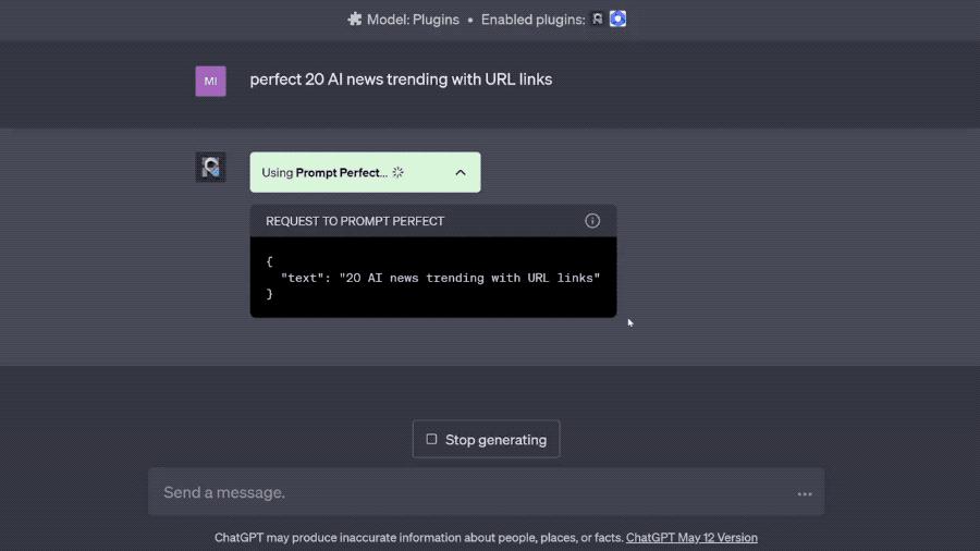 在网友@Min Choi的测试中,想获得最新的AI新闻趋势,只需要简单打几个关键词,插件会自动完善成一句提示语并得到最终的新闻链接。