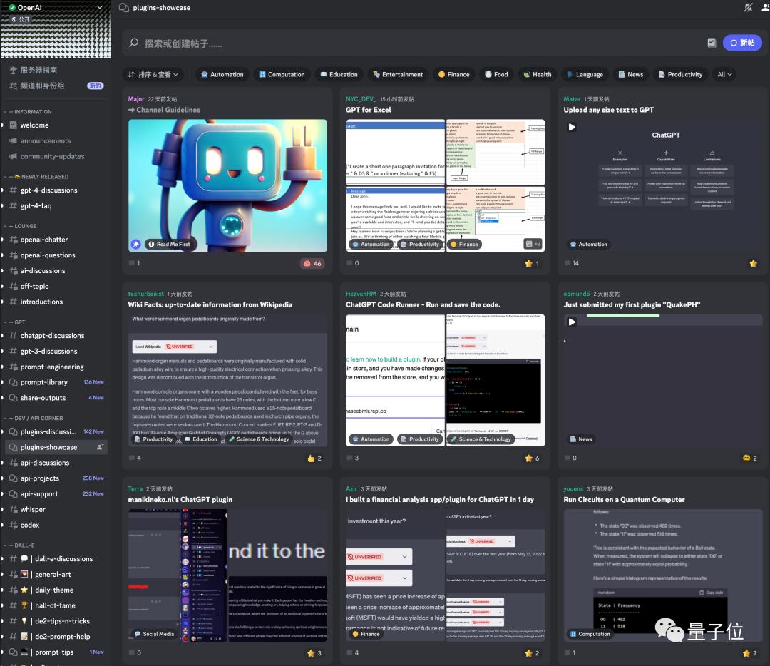 OpenAI官方Discord上有一个频道,专门供开发者展示他们已经制作好的插件,平均每天都会出现2-3个新插件。